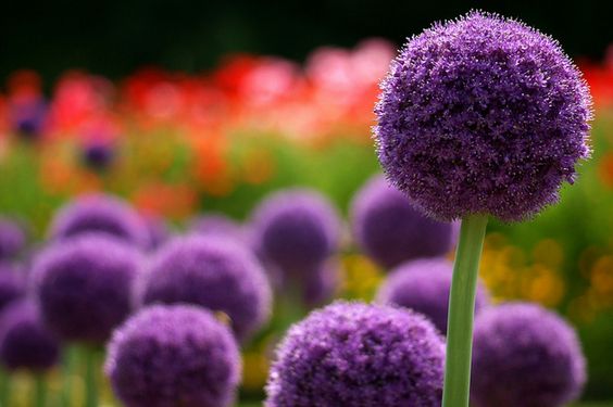 During the flowering season, the low gray green leaves lie on the ground, with straight and straight stems and tight flower balls highlighted, and purple balls adorned with stars, dreamy and romantic. The dense and plush texture, perfect and regular ball shape, like a big lollipop popping out of thin air, hovers above the flowers, instantly giving the illusion of falling into a fairy tale world.