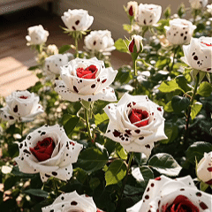 ✨ Imagine a rose unlike any you’ve ever seen — a deep crimson heart, wrapped in snowy white petals, each delicately marked with mysterious black speckles. The result? A breathtaking bloom that looks like it was painted by an artist.