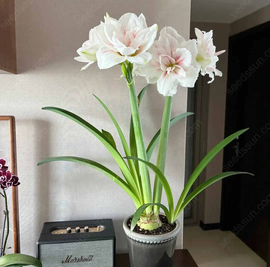 🌱 Planting Amaryllis 'Watercolor' is very simple: First, plant the bulb in well-drained flower soil, exposing about 1/3 of the top of the bulb. 💧 Water lightly and place in a sunny place, and you can usually see gorgeous flowers blooming in 6-8 weeks. 🌞 Don't forget to keep the soil slightly moist, but avoid waterlogging to ensure healthy growth of the plant.