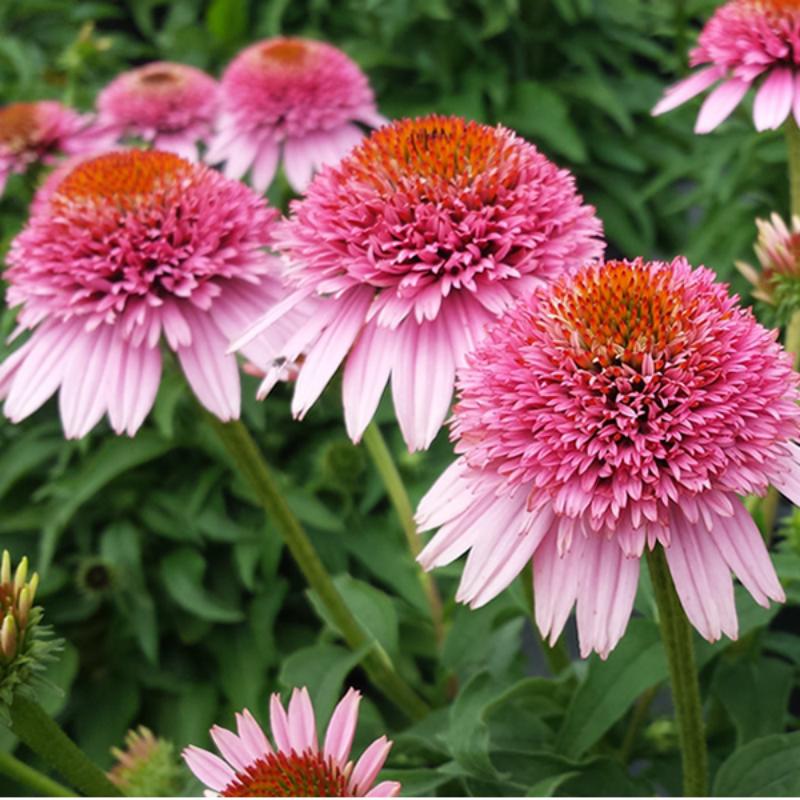 Both people and pollinators love these pretty North American native perennials, which have seen a resurgence in popularity. Echinacea purpurea, the purple coneflower, is the most commonly found Echinacea species. 🌸The big blooms are made up of a brownish-orange central cone and a ring of long, slender petals with a pinkish-purple hue radiating out from it. There are many more species and cultivars in different colors to choose from. There’s a coneflower for every garden, including bright single flowers and double blossoms, and colors from 🧡orange and 💛yellow to ❤️red and 🩷deep pink. Coneflowers bloom from summer to fall and they shine in a variety of garden settings.✨