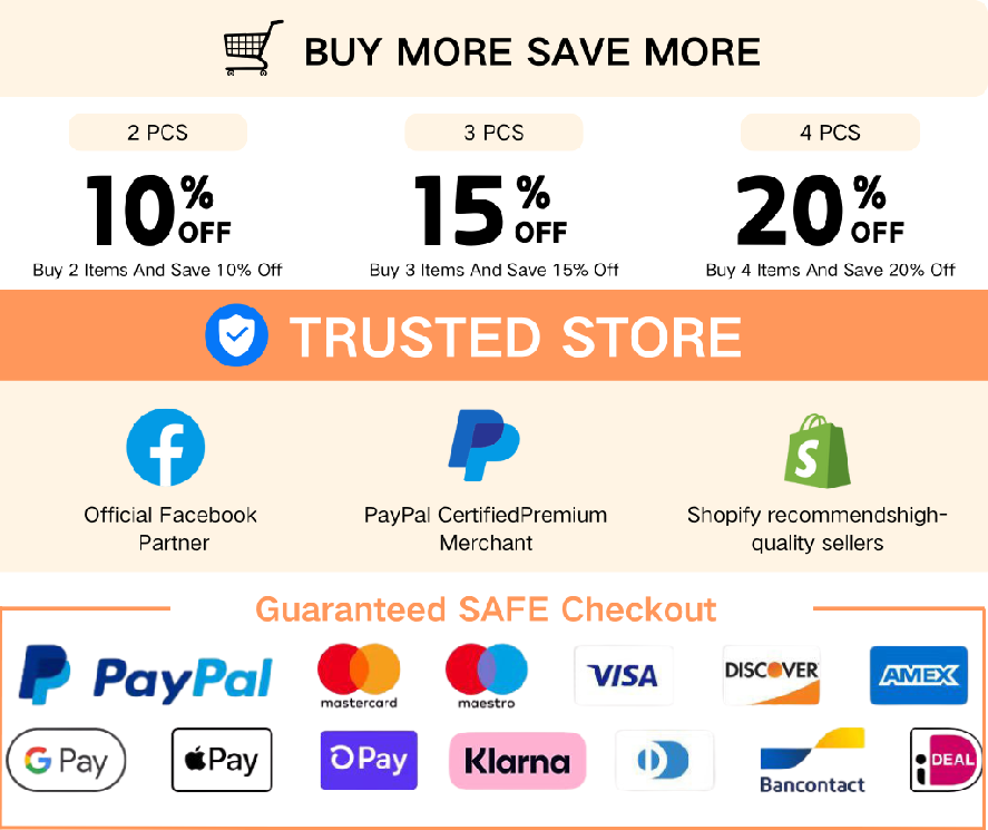 The Checkout Process is Guaranteed to be 100% Safe and Secure with Visa, Mastercard, AMex, Discover, Apple Pay or PayPal.