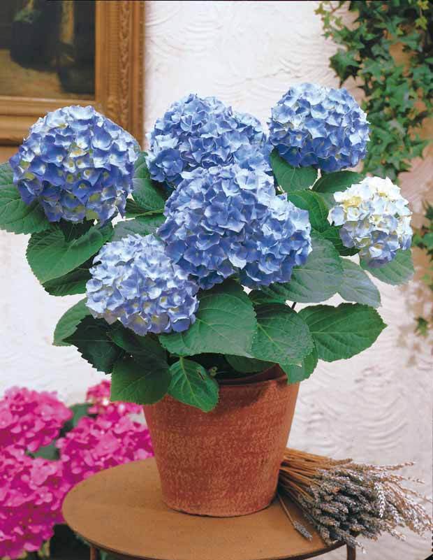 L'hortensia à grandes fleurs bleues (Hydrangea macrophylla) forme un buisson compact et vous offre ses gros pompons colorés recouvrant un abondant feuillage vert moyen. Ses usages sont multiples et vous permettent de fleurir tous les recoins du jardin : en massif avec d'autres arbustes ou plantes vivaces, en haie fleurie, en isolé, en sous-bois (car il supporte très bien une exposition ombragée) et même dans de grands pots sur le balcon.