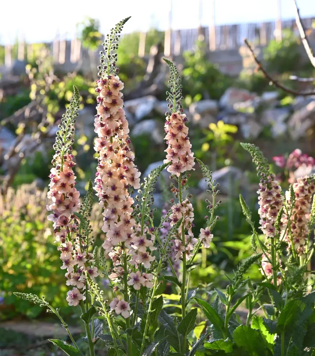 Mullein is well adapted to cottage, gravel, and rock gardens. In its function as a pioneer plant, it loves to protect and cover disturbed soil. The first year, this biennial will create a short basal rosette of thick, soft, pale-green leaves that are sometimes called “cowboy toilet paper” or “flannel leaf”. The second year it will send up a tall stalk of abundant dense flowers。It is a pollinator-friendly, short-lived perennial that reseeds easily to bring color to the garden.