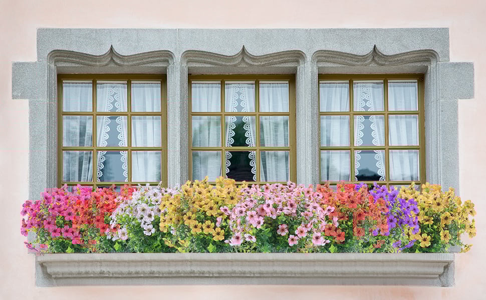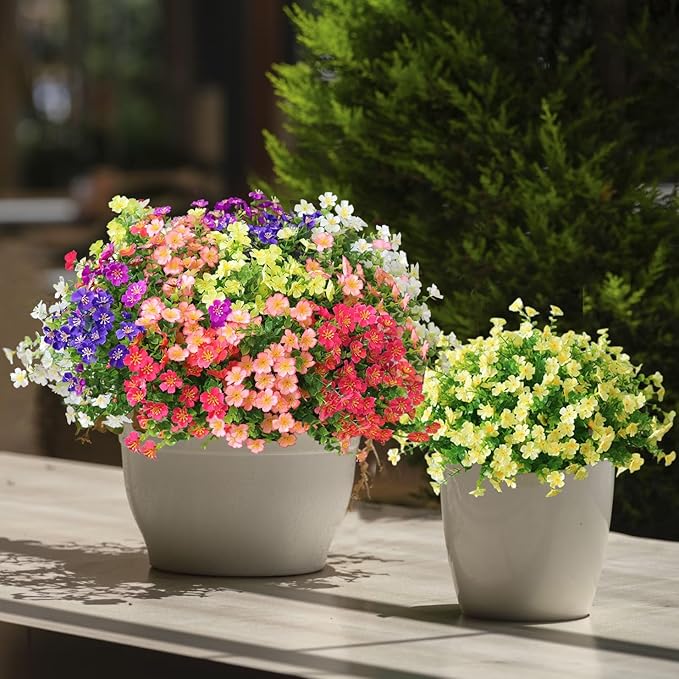 These stunning faux flowers are ideal for decorating gardens, patios, porches, balconies, and windows. Whether placed in planter pots, window boxes, or as standalone arrangements, these artificial plants will elevate your home decor with a colorful, welcoming ambiance.
